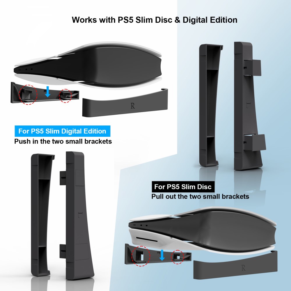 Hold konsollen din sikkert på plass med dette kompakte stativet, utviklet spesielt for PlayStation 5 Slim. Takket være det horisontale designkonseptet minimeres risikoen for at konsollen velter eller faller — en smart måte å beskytte investeringen din på.
