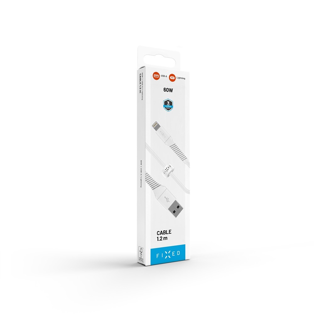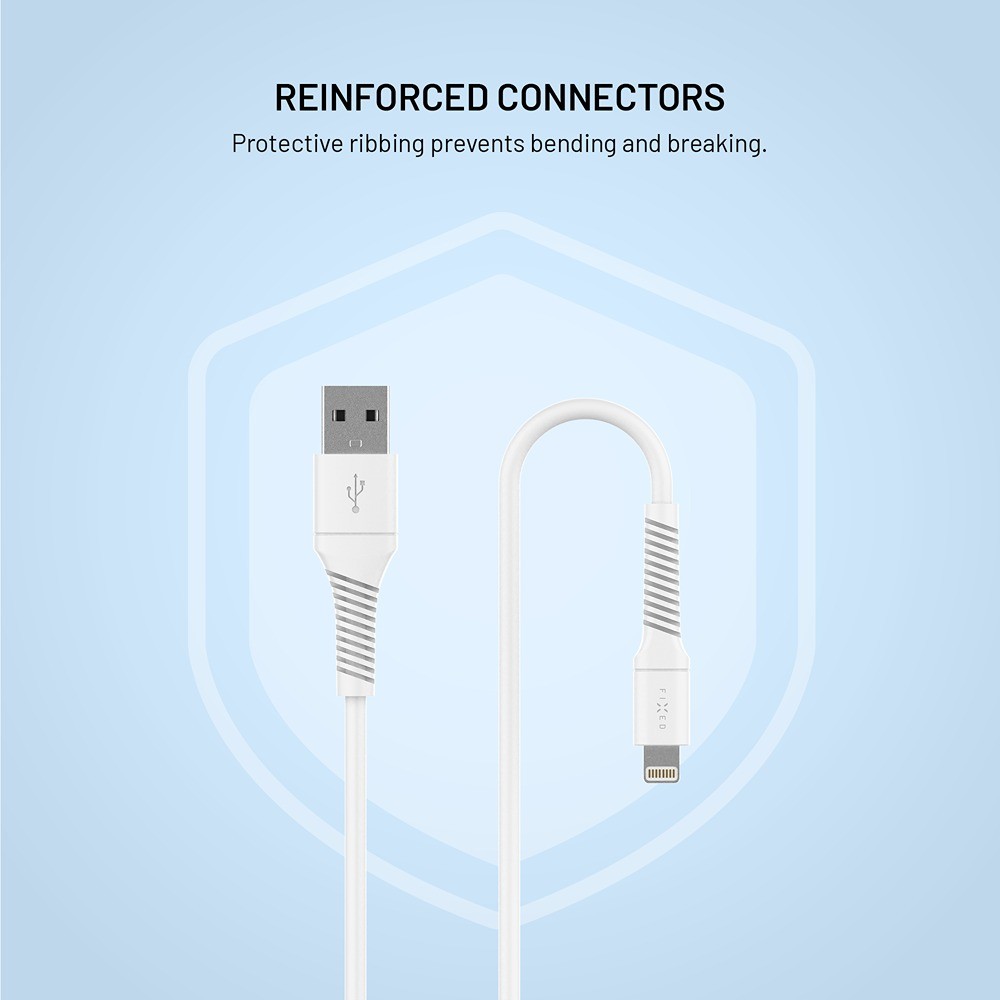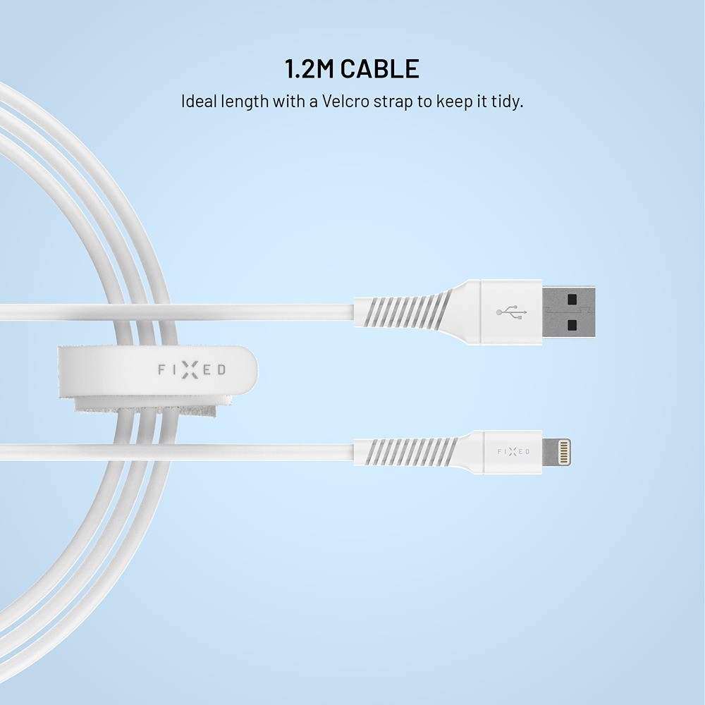 FIXED data- og ladekabel med USB-A og Lightning-kontakter er et pålitelig tilbehør for din Apple-enhet. Det brukes til å lade en iPhone eller iPad med en Lightning-kontakt med maksimal hastighet, samtidig som det håndterer alle dataoverføringer med en hastighet på 480 Mbps.