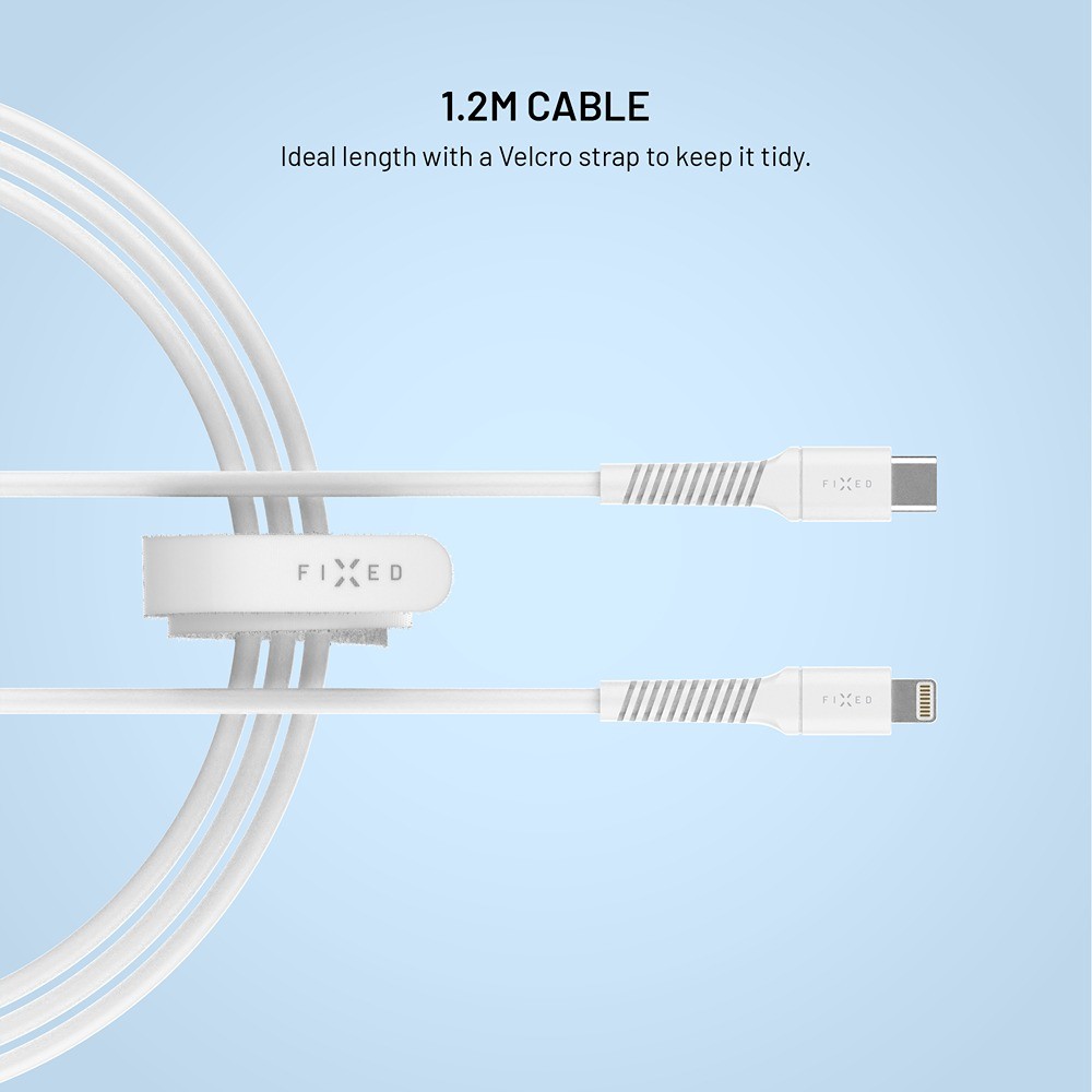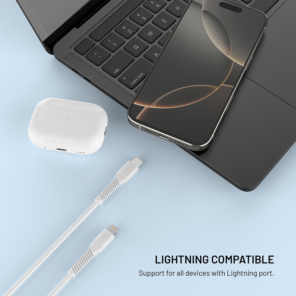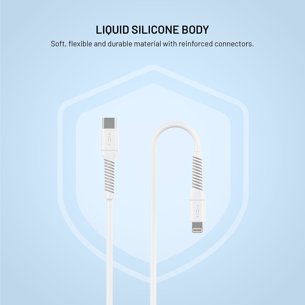 FIXED Liquid Silicone data- og ladekabel med USB-C og Lightning-kontakter er et pålitelig tilbehør for ditt Apple-produkt. Det brukes til å lade din iPhone eller iPad med en Lightning-kontakt med maks hastighet og ytelse, samtidig som det håndterer overføringen av musikk, bilder og all data med en hastighet på 480 Mbps.