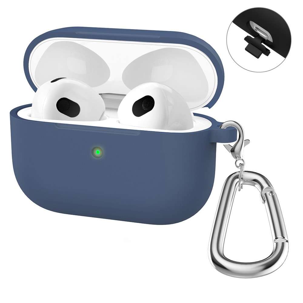 - AirPods 3 Deksel Silikon med Karabinkrok Mørkeblå