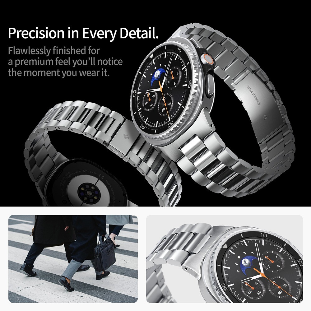Spigen Samsung Galaxy Watch 8 40/44mm/Classic 46mm armbånd Modern Fit Silver er et sølvarmbånd til Samsung Galaxy Watch 8 40mm, Samsung Galaxy Watch 8 44mm og Samsung Galaxy Watch 8 Classic 46mm.