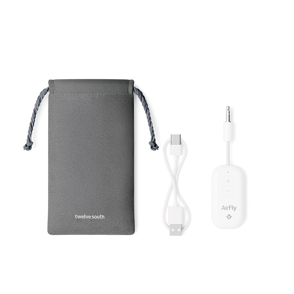 Gjør reiseopplevelsen komplett med AirFly Pro 2. Plugg den inn i flysetets høretelefonutgang, par dine Bluetooth-hodetelefoner og nyt sømløs, trådløs lyd — uten å måtte bruke de slitte øreproppene som følger med om bord.