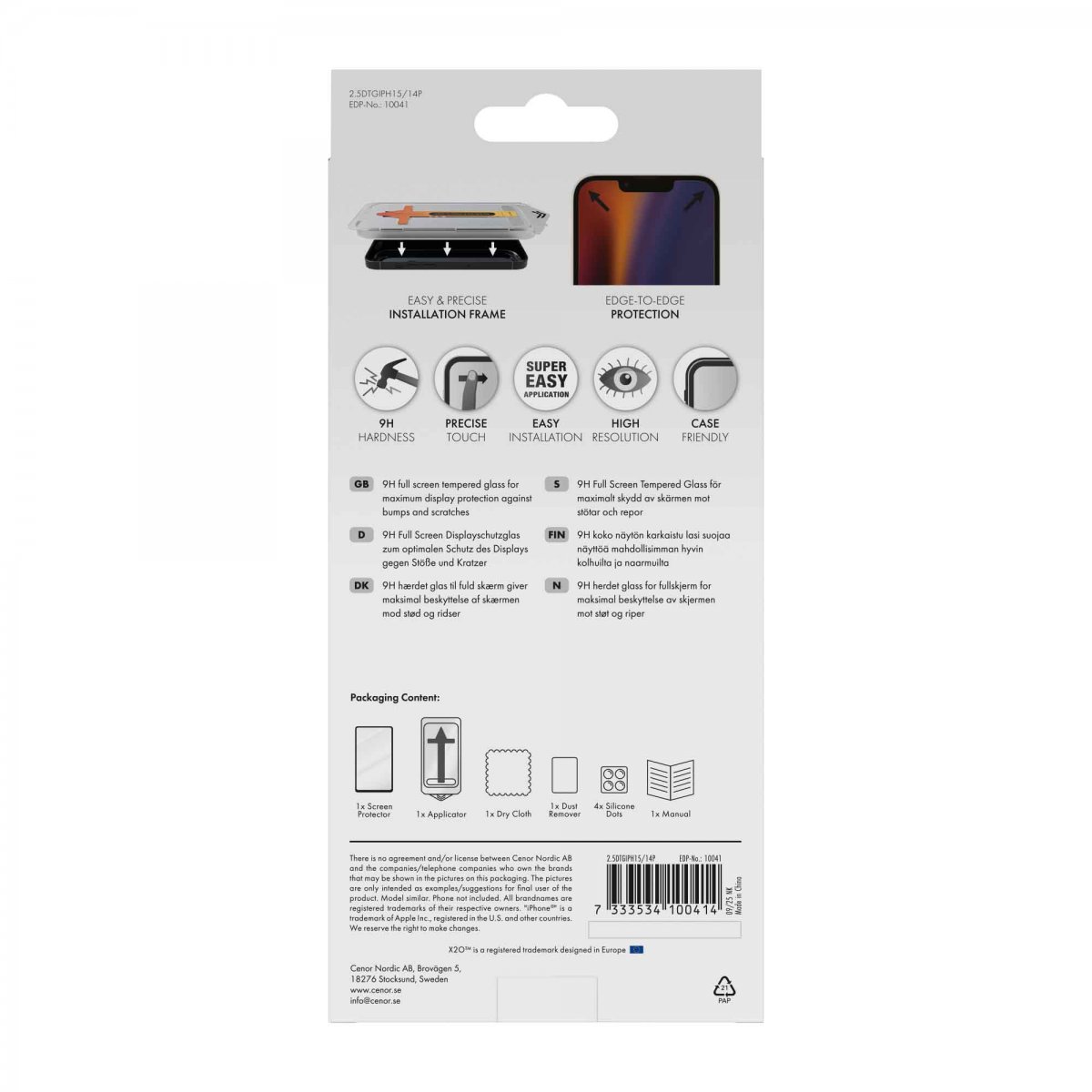 X2O iPhone 14 Pro/iPhone 15 Skjermbeskyttelse Full Screen er en gjennomsiktig displaybeskyttelse til iPhone 14 Pro og iPhone 15.