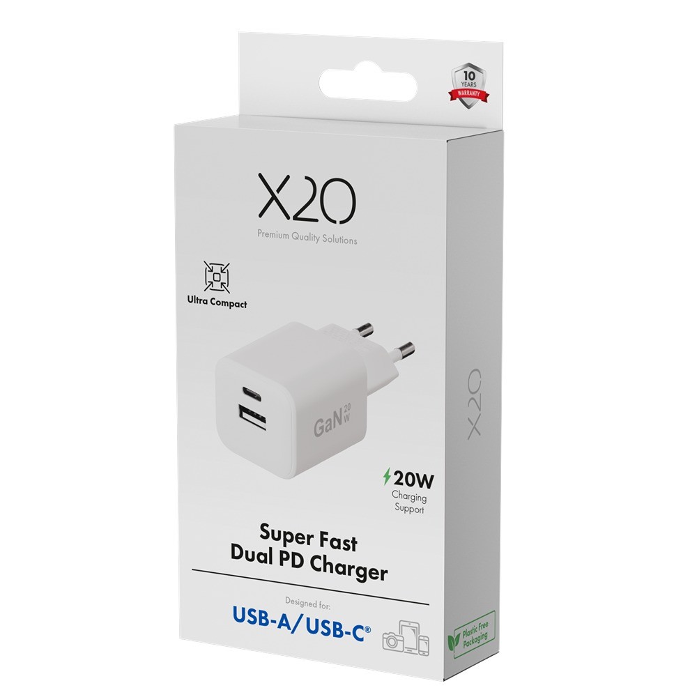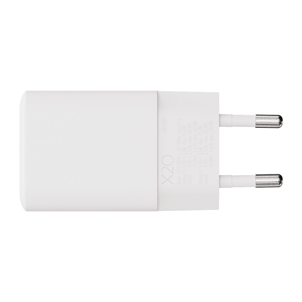 X2O Lader 20W Double USB-C/USB-A GaN Hvit