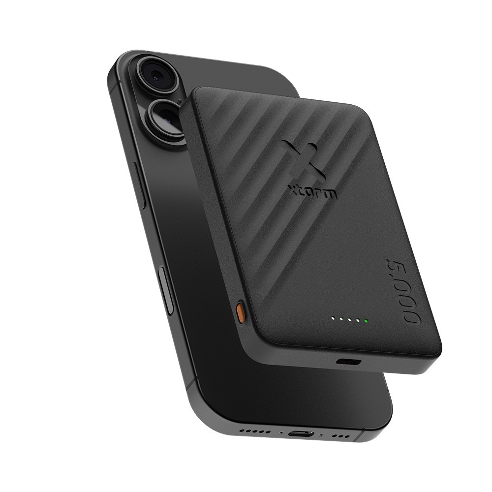 Lading med Xtorm MagCharge Pro er likt Apples MagSafe. Magnetene i powerbanken og smarttelefonen din passer perfekt sammen og skaper en sterk magnetisk forbindelse som holder dem sikkert festet til hverandre. Den totale kapasiteten på 5 000 mAh er tilstrekkelig til å lade smarttelefonen din trådløst én gang når du er på farten. Laderen festes magnetisk på baksiden av telefonen din og lader den trådløst. Den lader en iPhone med 7,5 W, og andre kompatible smarttelefoner lader med opptil 15 W. Du kan også lade trådløse hodetelefoner med et kompatibelt etui ved å bruke denne Power Bank.