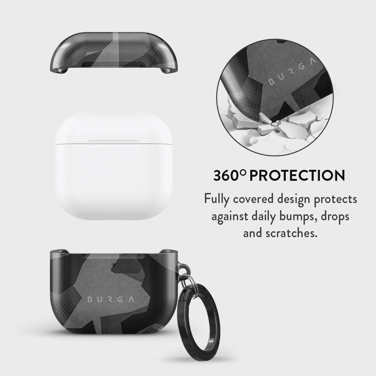 Burga AirPods 4 Deksel Design Night Black Camo er et flerfarget mobildeksel til Apple AirPods 4.