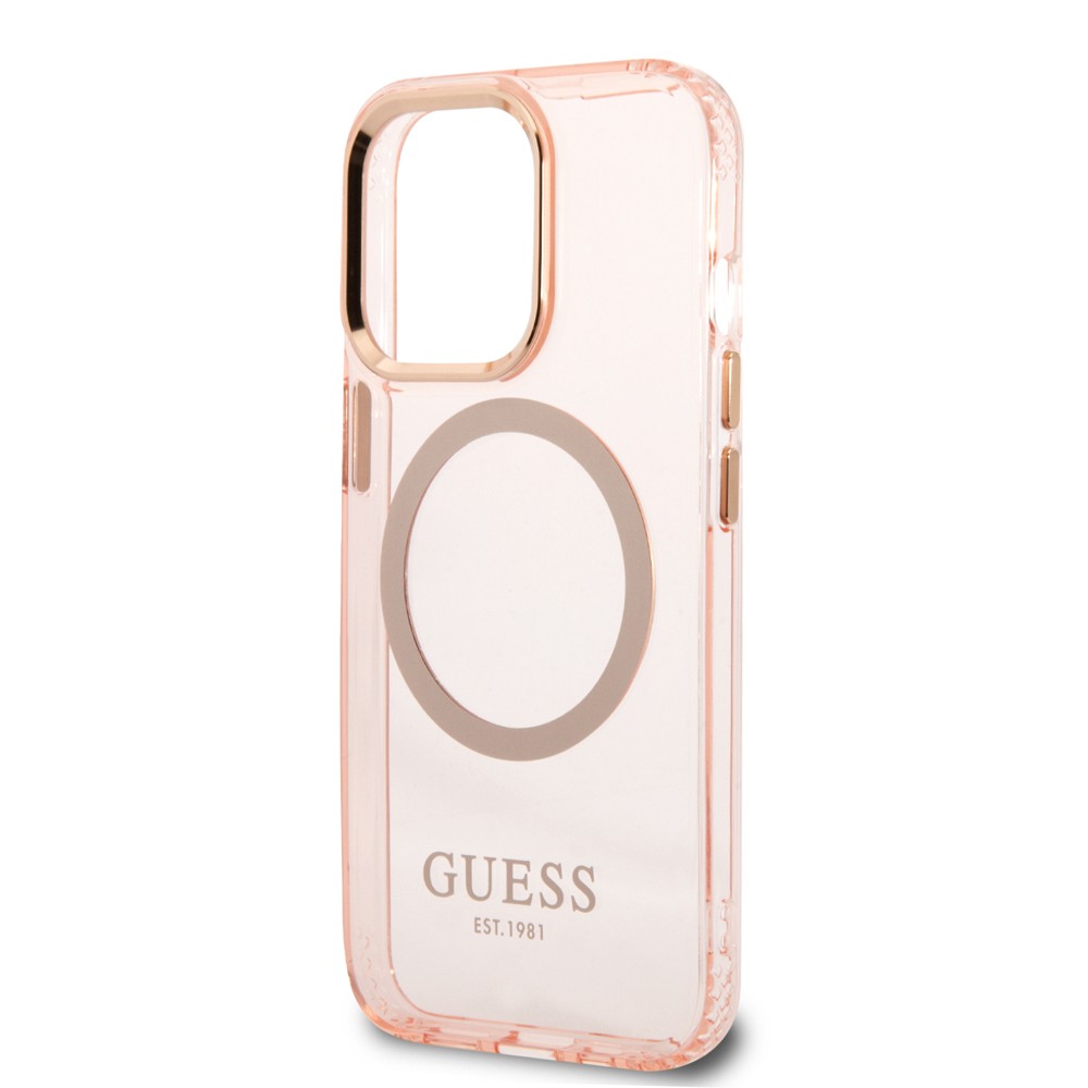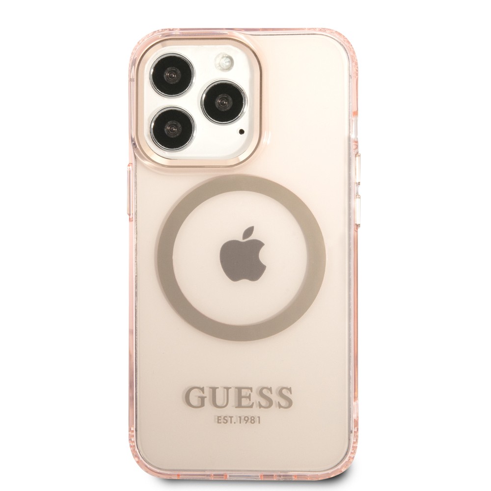 Guess iPhone 13 Pro Skal Translucent MagSafe Rosa er et rosa mobildeksel til iPhone 13 Pro.