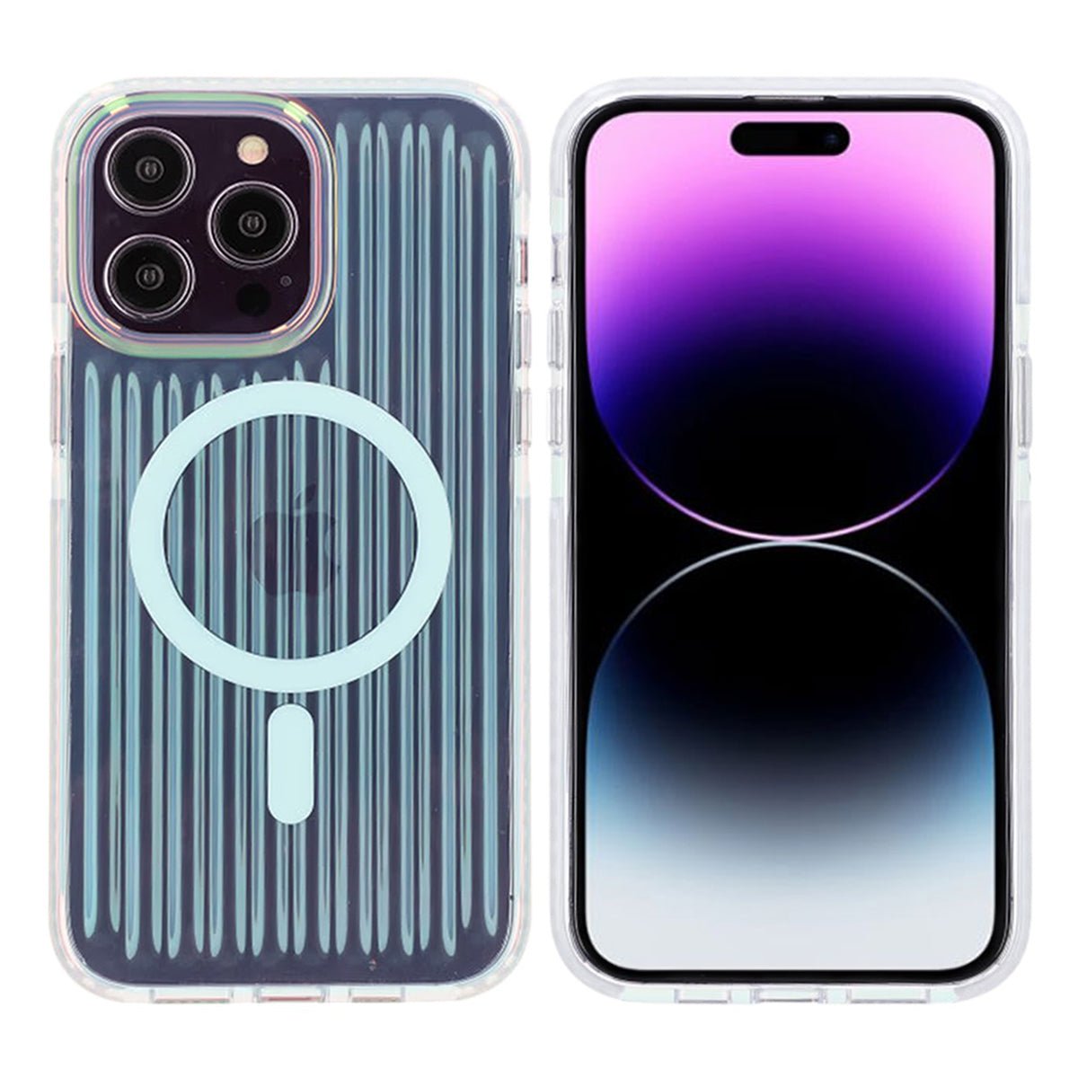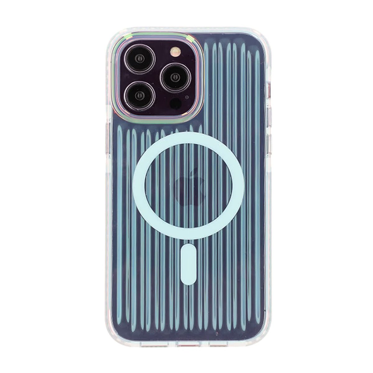 Gi din iPhone 14 Pro et unikt utseende med dette støtsikre telefondekselet som har en reflekterende irisert finish med et hint av blå farge.