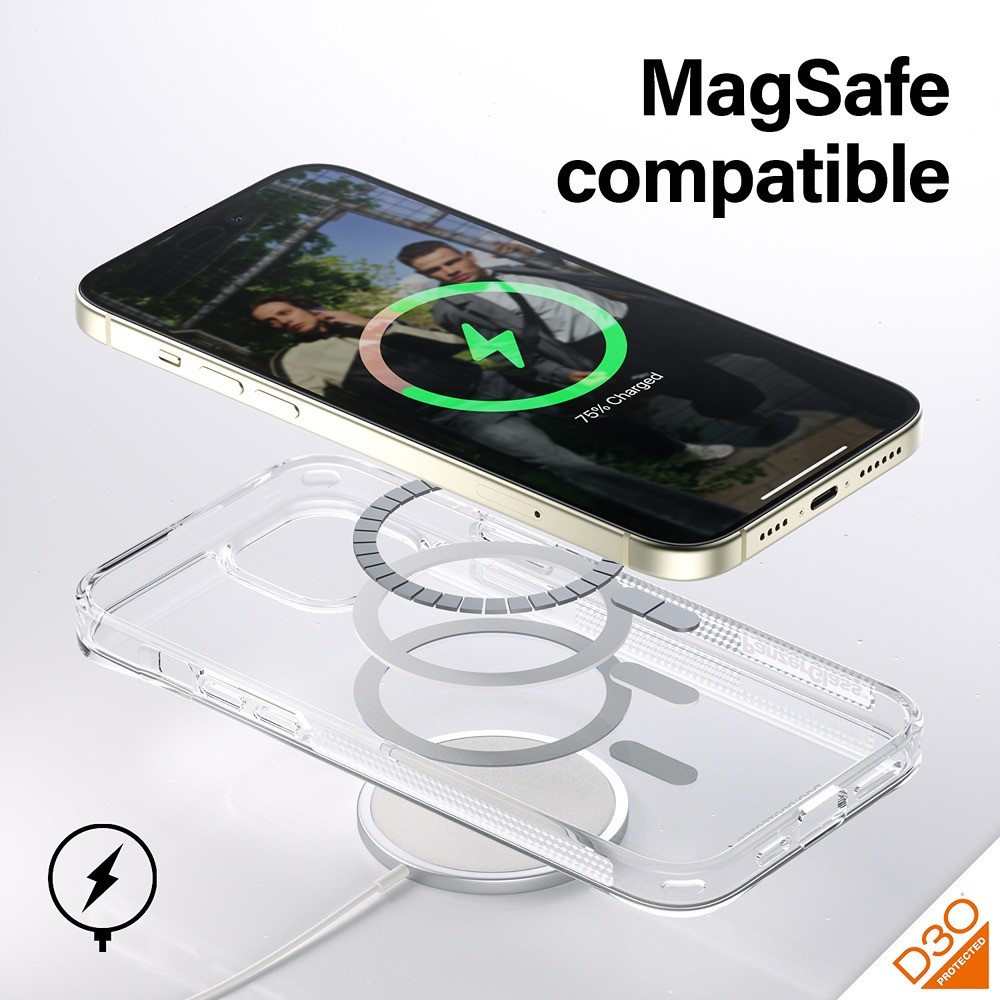 De innebygde magnetene gjør dekselet MagSafe-kompatibelt, slik at lading og tilbehør kan brukes uten å ta av beskyttelsesdekselet.