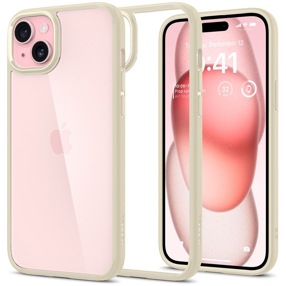 Spigen iPhone 15 Plus Skal Ultra Hybrid Mute Beige er et gjennomsiktig og beige mobildeksel til Apple iPhone 15 Plus.