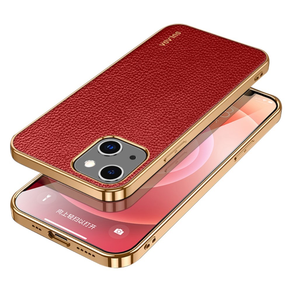 Sulada iPhone 15 Pro Max Deksel Litchimønster Belagt Kant Rød