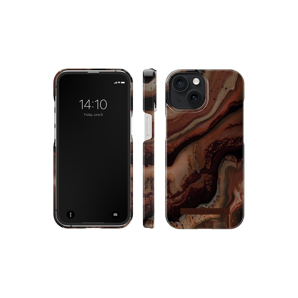 Ideal of Sweden iPhone 15 Skal Fashion Case MagSafe Dark Amber Marble er et flerfarget mobildeksel til iPhone 15.