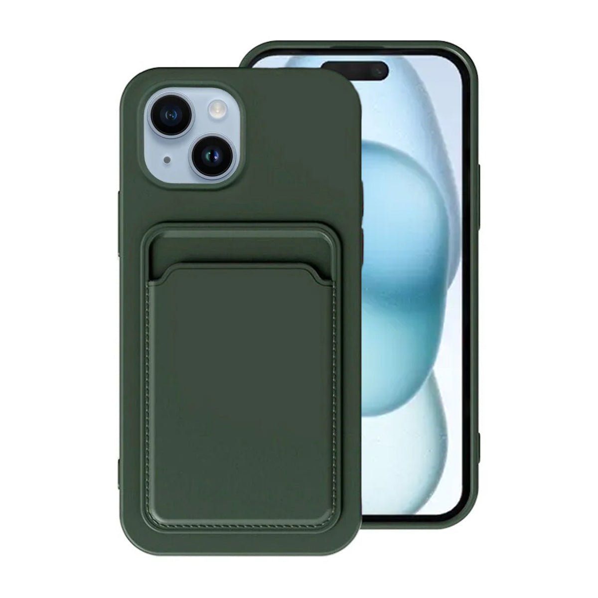 iPhone 15 deksel kortholder grønn er et grønt mobildeksel til Apple iPhone 15.
