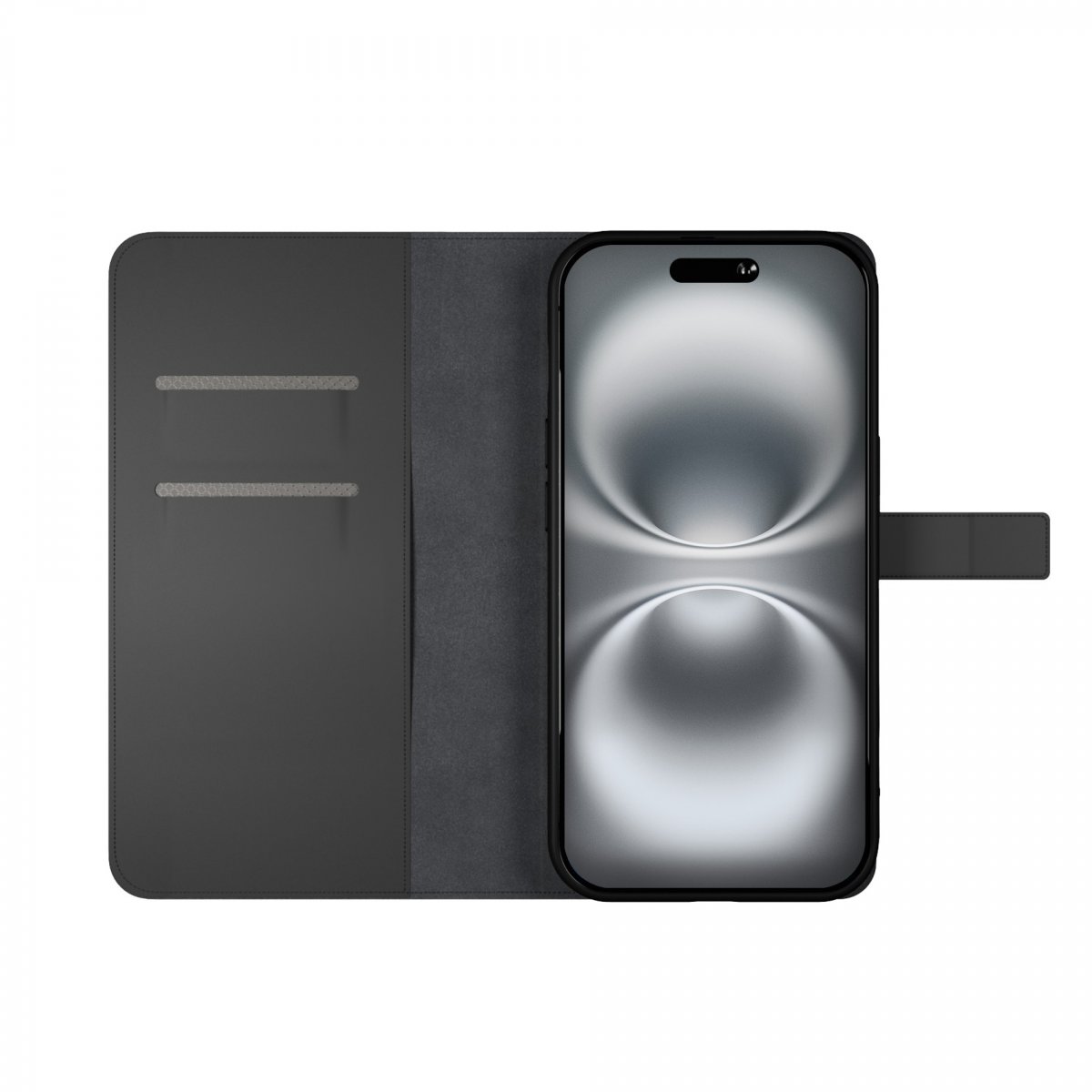 Puro iPhone 16 Pro Fodral Wallet Stand Svart er et svart mobildeksel til iPhone 16 Pro.