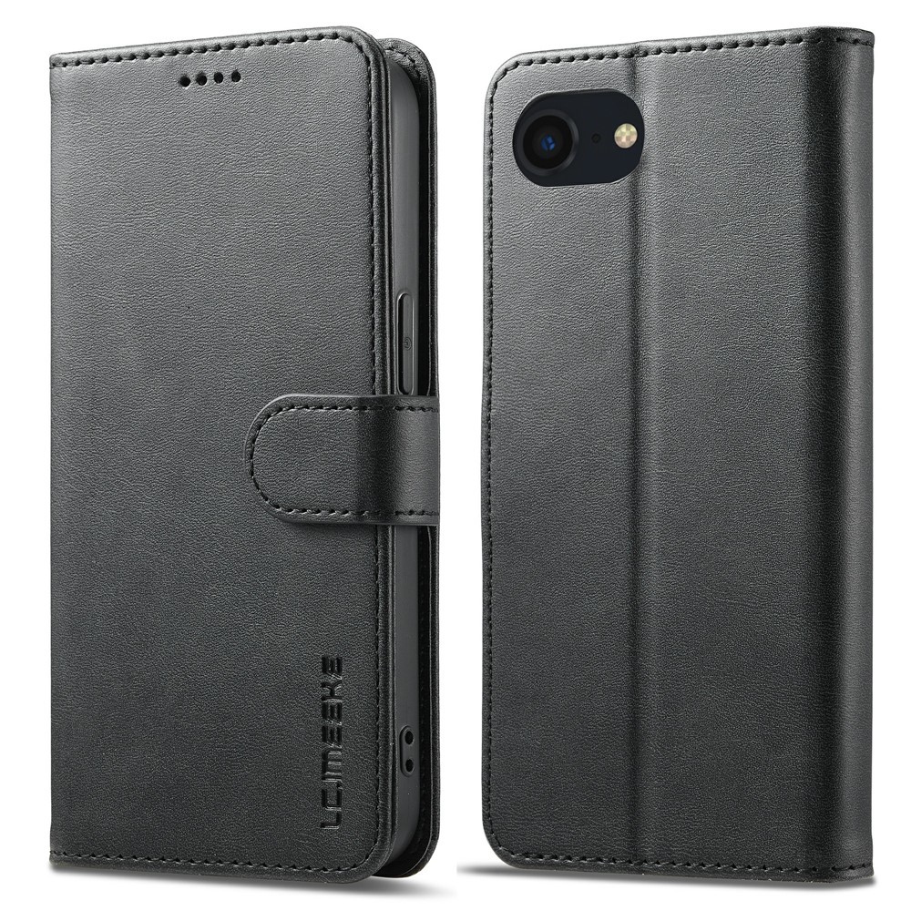 LC.IMEEKE iPhone 16e/17e deksel med kortlomme og stativfunksjon i svart er et svart mobildeksel til iPhone 16e/17e.