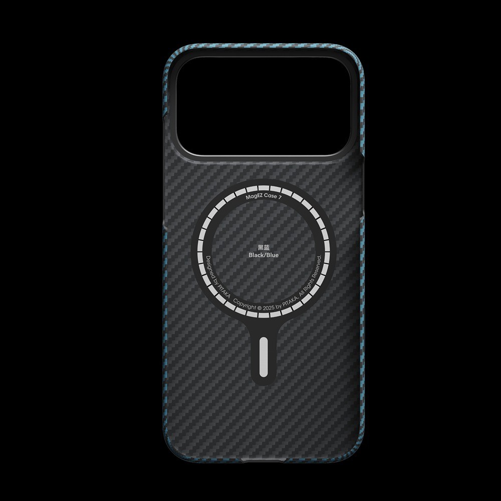 Pitaka iPhone 17 Pro Max Deksel Edge Black/Blue Twill er et svart og blått mobildeksel til iPhone 17 Pro Max.