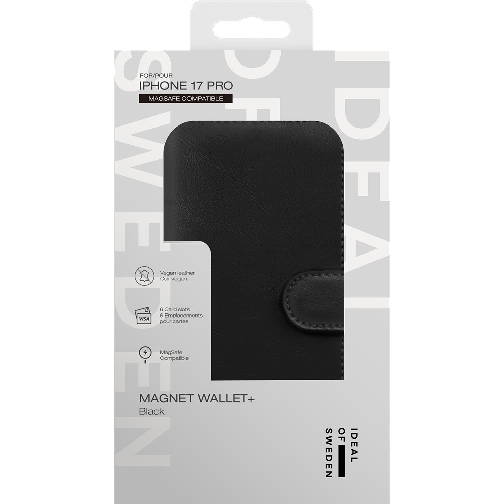 Ideal of Sweden iPhone 17 Pro Fodral Magnet Wallet+ MagSafe Svart er et svart mobildeksel til iPhone 17 Pro.