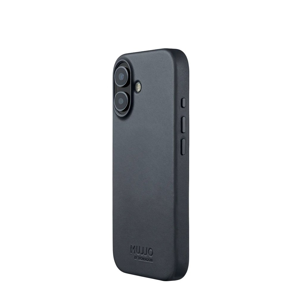 Mujjo iPhone 17 Skal Full Leather Case MagSafe Basalt er et blått og grått mobildeksel til Apple iPhone 17.