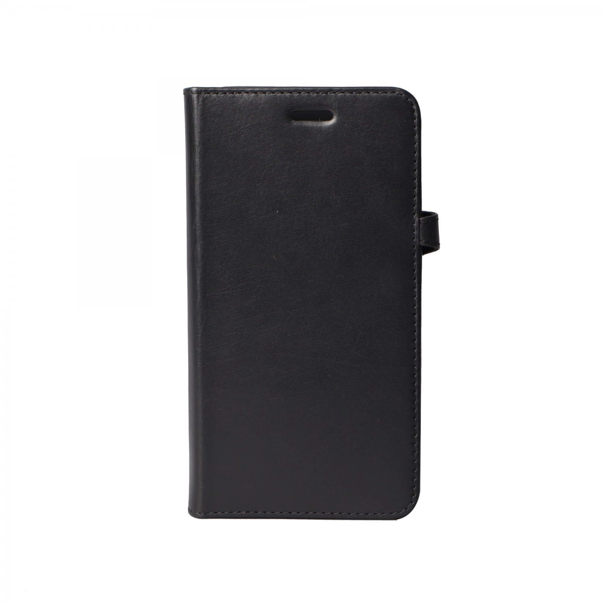 Telefonen sitter i et magnetdeksel som er avtakbart, så du kan bruke telefonbeskyttelsen med eller uten selve lommebokdelen. På baksiden av det avtakbare dekselet finnes samme buffalolær.