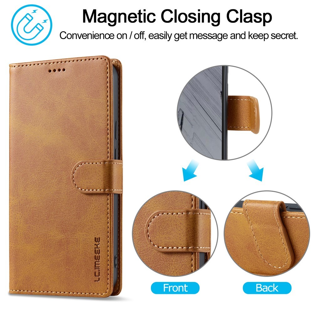 LC.IMEEKE Google Pixel 10 Pro XL-etui med kortlomme og stativfunksjon i lysebrun er et brunt mobildeksel til Google Pixel 10 Pro XL.