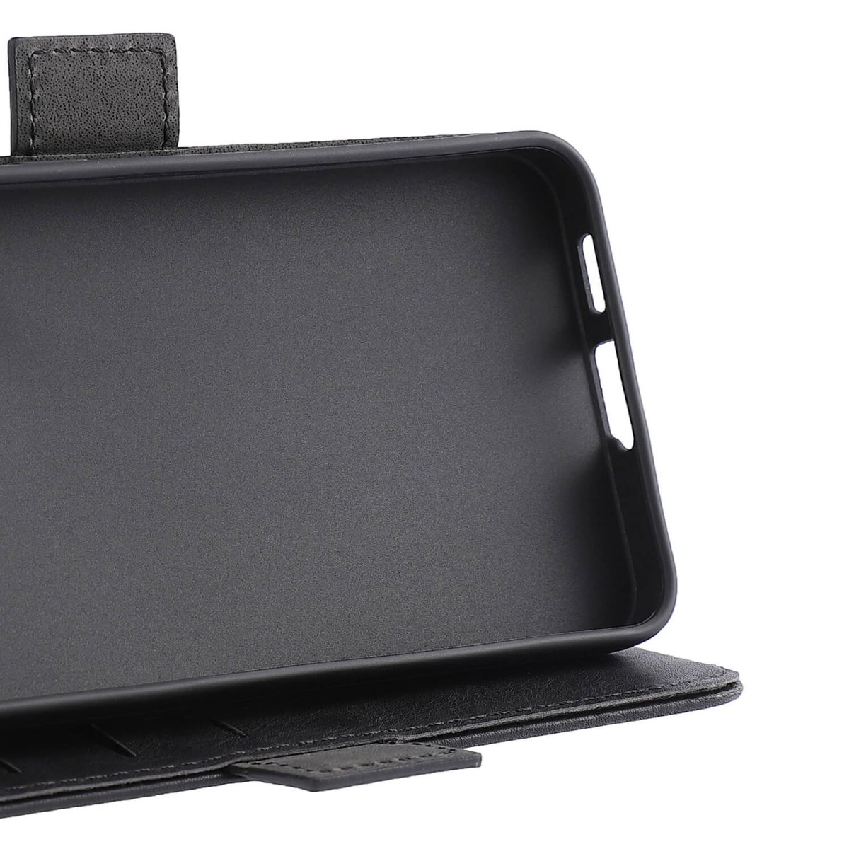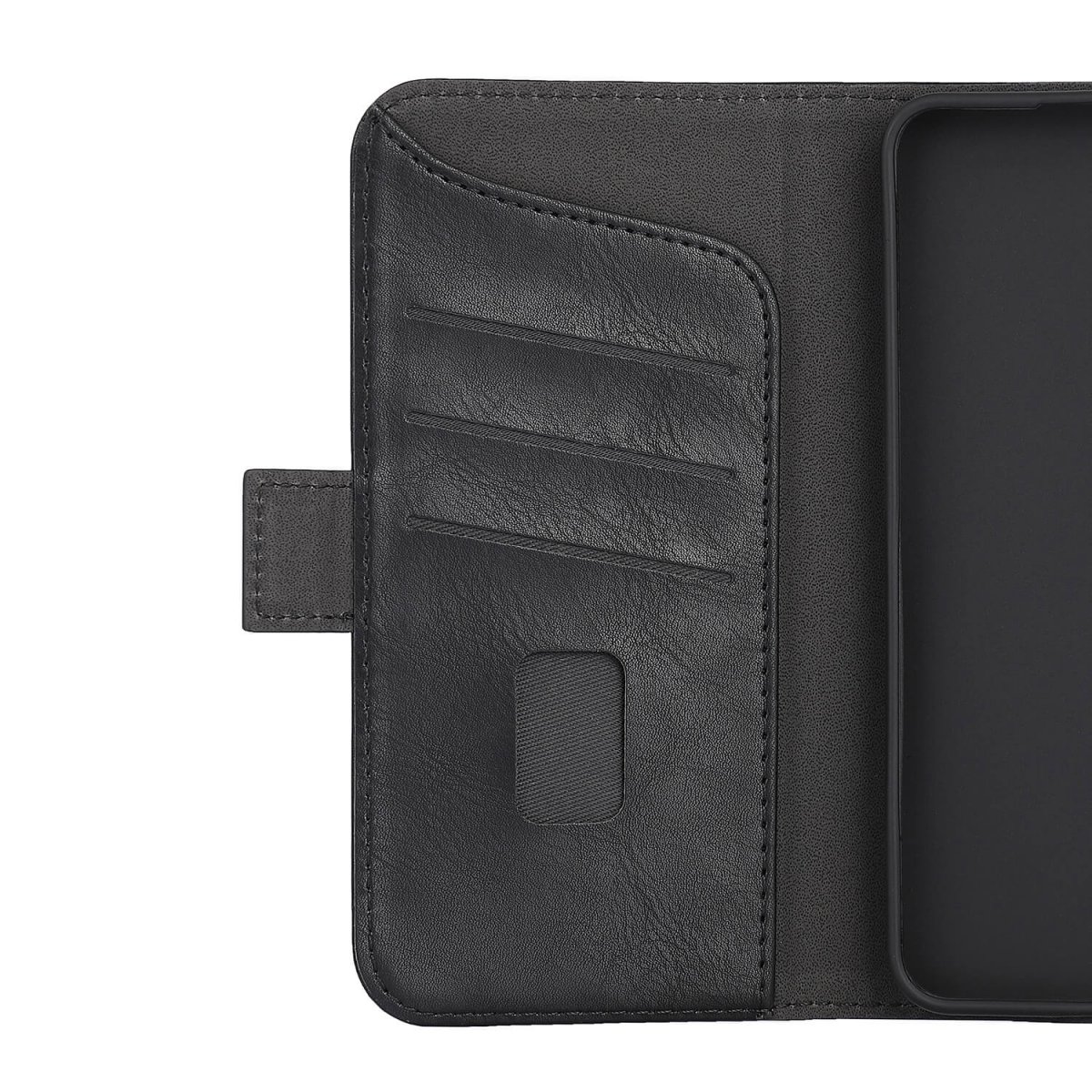 Som svart mobildeksel beskytter det både for- og bakside når det er lukket. Som beskyttelsesdeksel er det også praktisk å bruke i hverdagen takket være kortlommene.