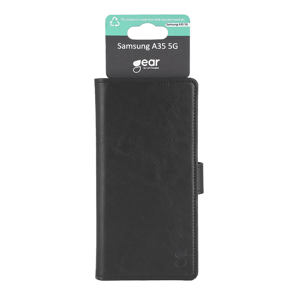 Gear Samsung Galaxy A35 Etui 3 Kortlommer Svart er et svart mobildeksel til Samsung Galaxy A35.