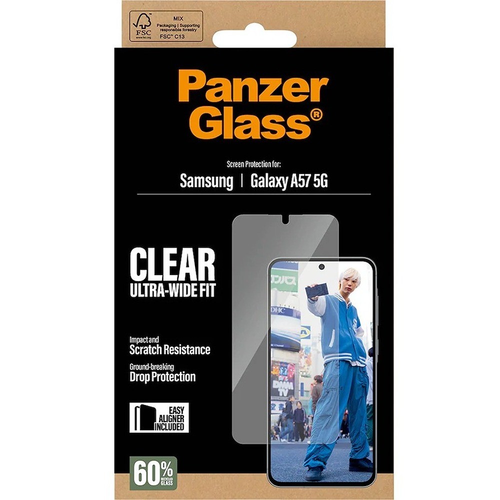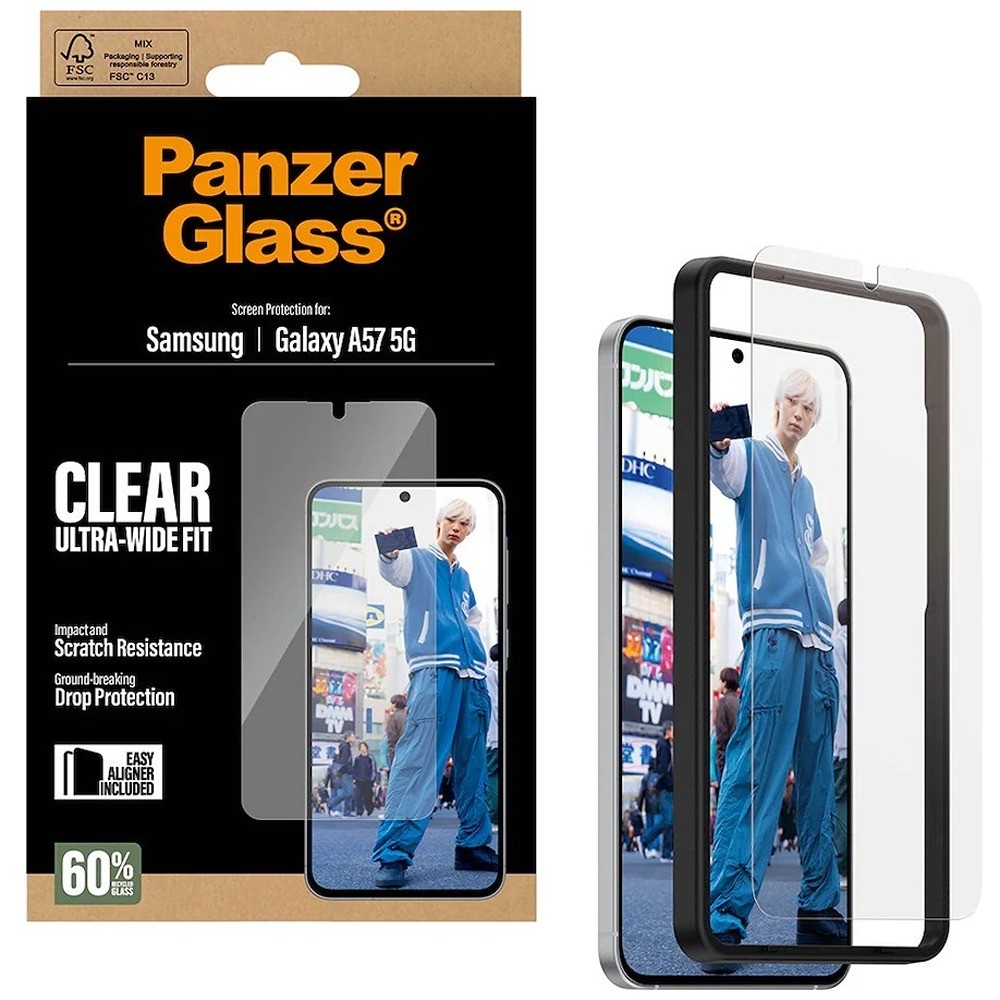 PanzerGlass Samsung Galaxy A57 Skjermbeskyttelse Ultra-Wide Fit EasyAligner er en gjennomsiktig skjermbeskyttelse for Samsung Galaxy A57.
