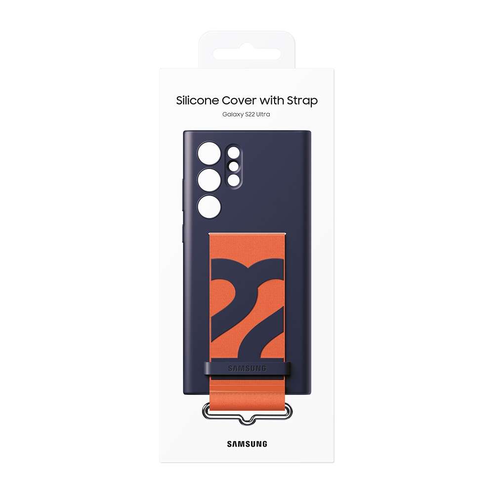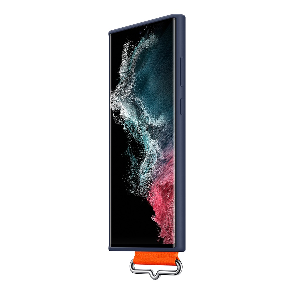 Samsung Original Galaxy S22 Ultra Skal Silicone Cover with Strap Navy er et blått mobildeksel til Samsung Galaxy S22 Ultra.