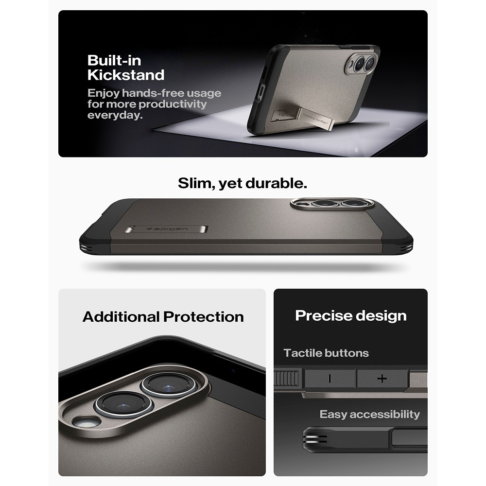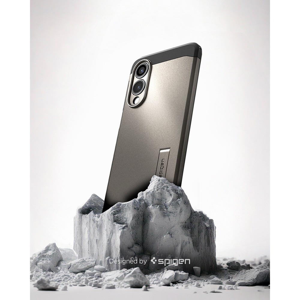 Spigen Samsung Galaxy S25 Edge Skal Tough Armor MagFit Gunmetal er et grått mobildeksel til Samsung Galaxy S25 Edge.