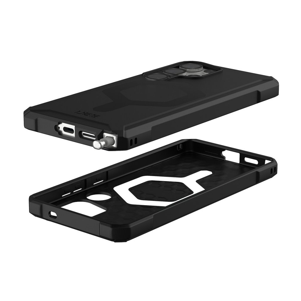 Urban Armor Gear (UAG) Samsung Galaxy S25 Ultra Skal Essential Armor MagSafe Svart er et svart mobildeksel til Samsung Galaxy S25 Ultra.