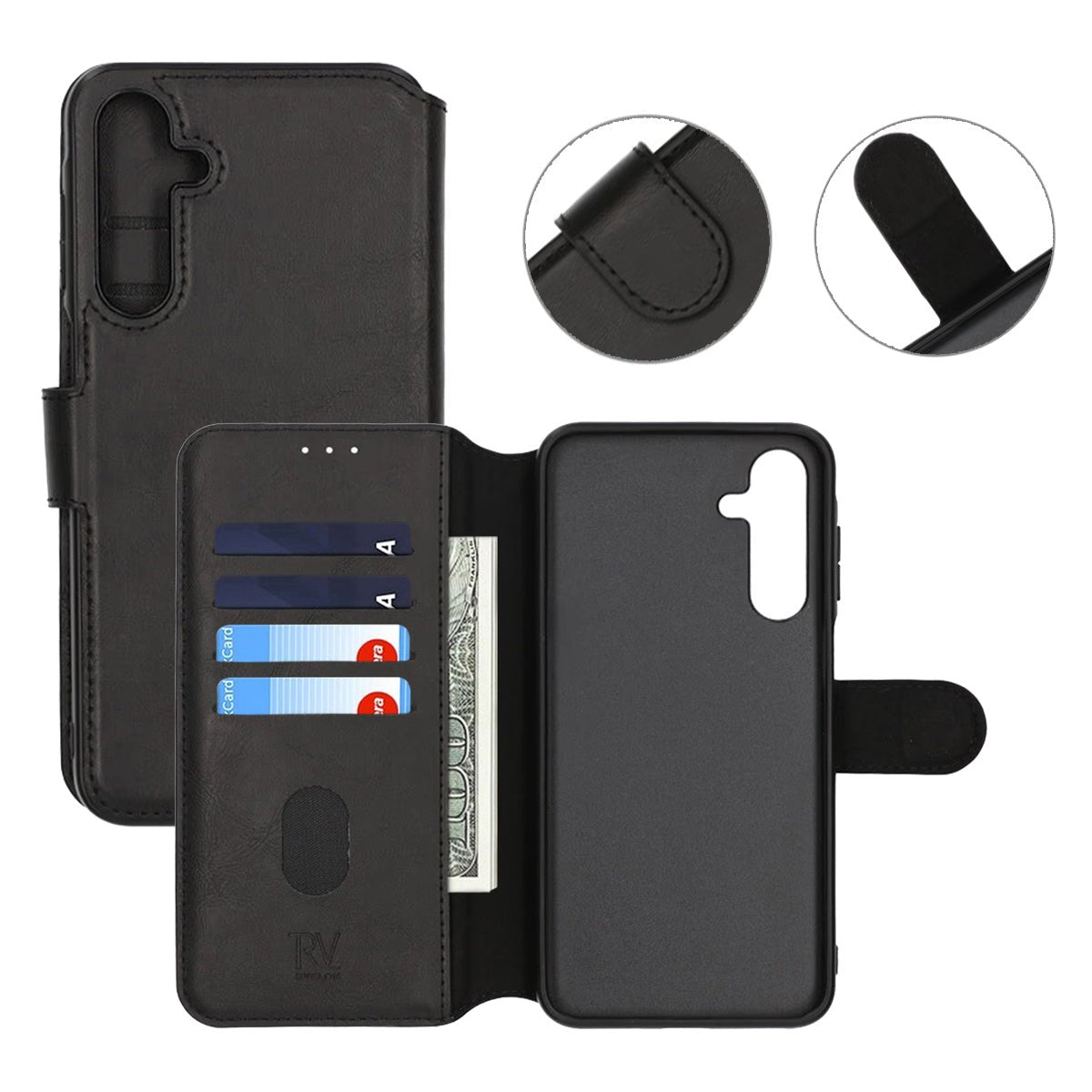 Beskytt din Samsung Galaxy S25 med dette elegante og funksjonelle lommebokdekslet fra Rvelon. Designet for den moderne brukeren som ønsker å kombinere stil og funksjonalitet, tilbyr dette dekselet både robust beskyttelse og smart lagring for kort og kontanter. Perfekt for de som ønsker alt i ett og unngå å bære en separat lommebok.