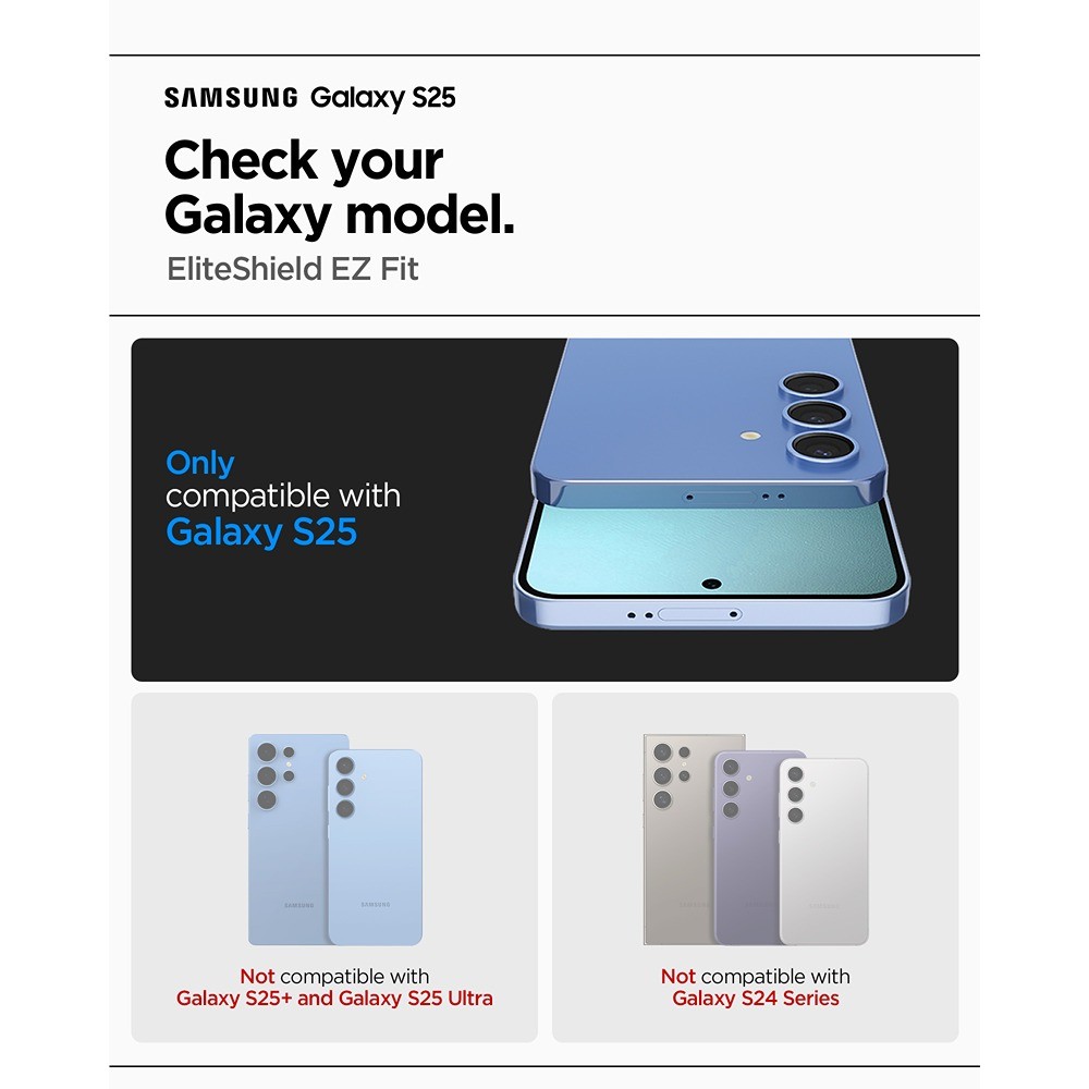 Spigen Samsung Galaxy S25 Skjermbeskytter EliteShield EZ Fit er en gjennomsiktig skjermbeskytter til Samsung Galaxy S25.