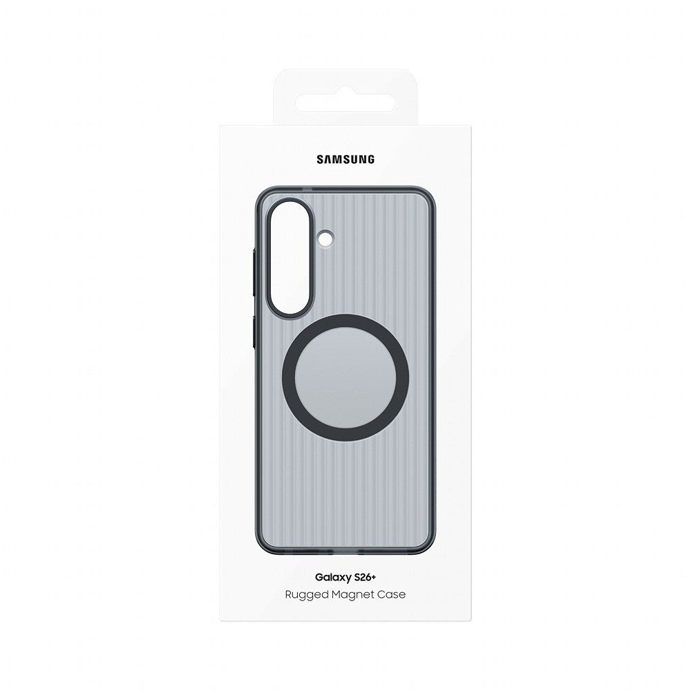 Samsung Original Galaxy S26 Plus Deksel Rugged Magnet Case Svart er et svart og gjennomsiktig mobildeksel til Samsung Galaxy S26 Plus.