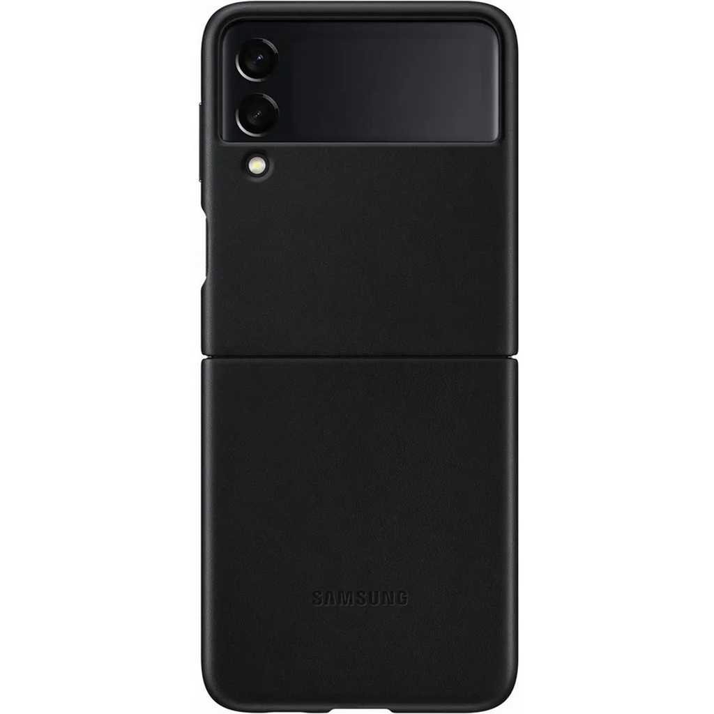Samsung Original Galaxy Z Flip 3 Deksel Leather Cover Svart er et svart mobildeksel til Samsung Galaxy Z Flip 3.