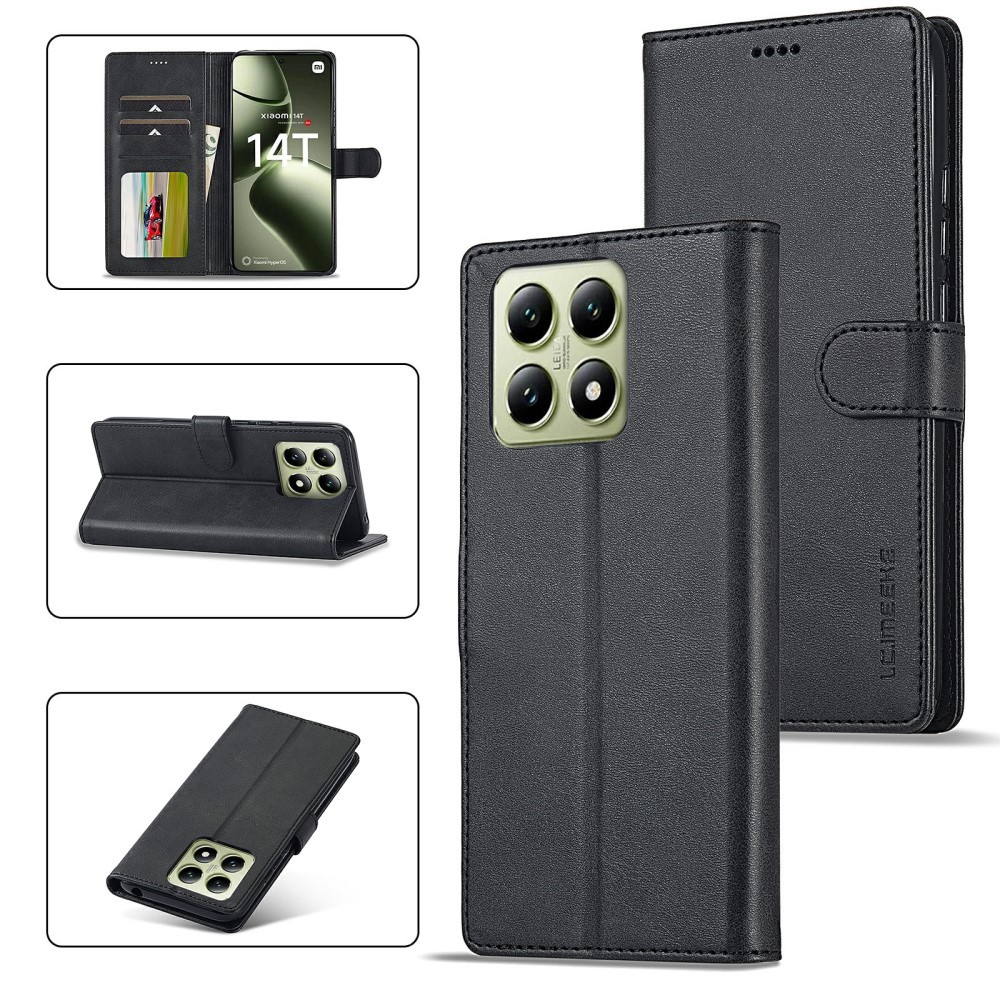 LC.IMEEKE Xiaomi 14T deksel med kortholder og stativfunksjon, svart, er et svart mobildeksel til Xiaomi 14T.
