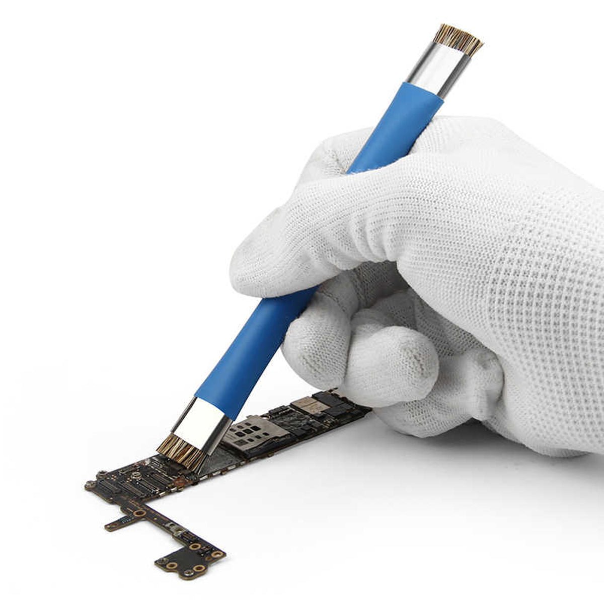 Du vil ikke ha noen problemer når du bruker vår dobbelt-hårede antistatiske børste til rengjøring av alle typer elektroniske enheter. Siden hovedkortverktøyet har en ergonomisk tekstur på håndtaket, får du et komfortabelt grep, noe som gjør det lettere å utføre arbeidet effektivt. Pass på å ikke dyppe børsten i vann, da det kan redusere børstens levetid. Når du har rengjort de elektroniske komponentene, ta en myk klut og tørk børsten forsiktig slik at det ikke er noen støvrester i den. Bruk ikke en våt børste til rengjøring av elektroniske deler, fordi vannpartikler lett kan ødelegge kretser og ledninger.